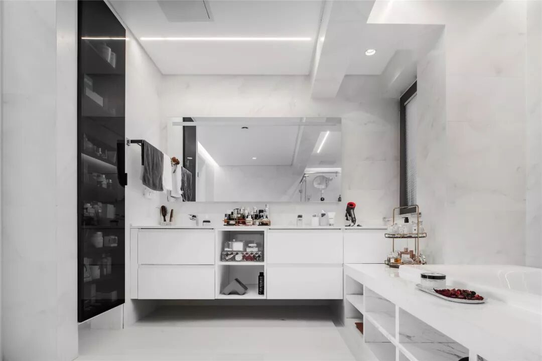卫生间的洗手台旁、淋浴区都会有下水管道的出现。在包水管的时候,根据下水管道和墙面的关系就可以做一个壁龛出来,会让墙面更整齐。
