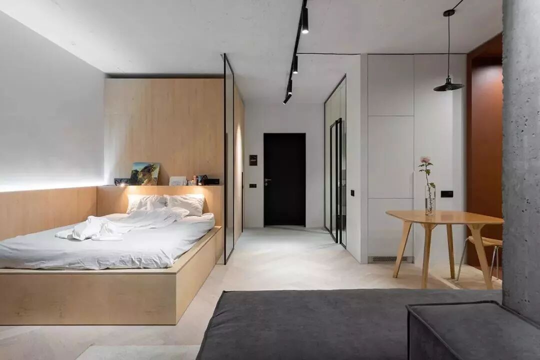 建议采用床与衣柜合二为一的设计,