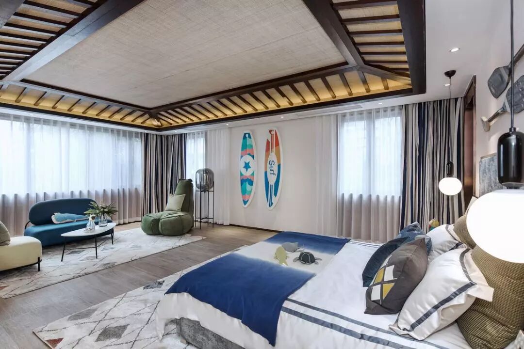 以休闲、度假、享受为主题的别墅,除了主卧之外,还设计了大量卧室空间,通过不同的装饰呈现迥异的风格。