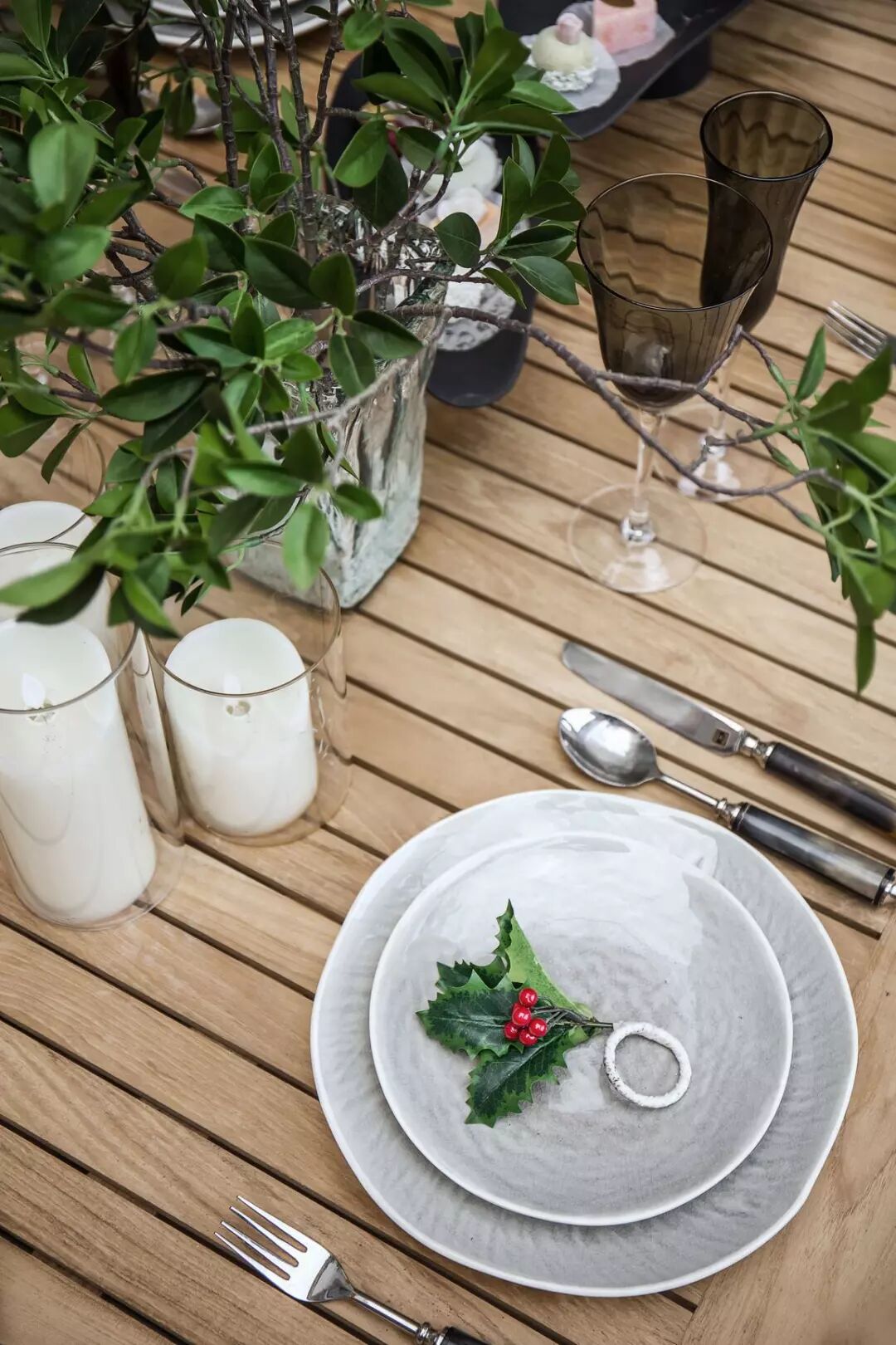 材质轻盈的长桌,别致的枝叶装饰,充满怀旧气息的雅致餐具,无不彰显主人崇尚自然的胸怀和优雅的品位。