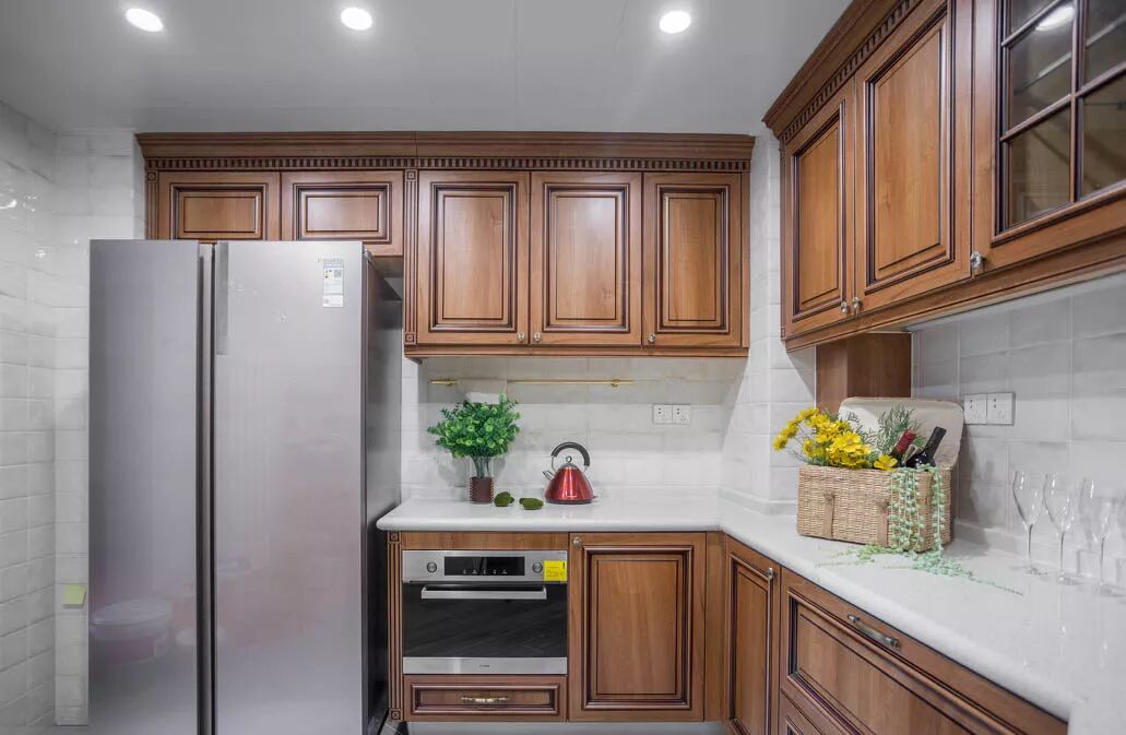 L型橱柜设计,可充分利用空间,使其能收纳更多的物品。