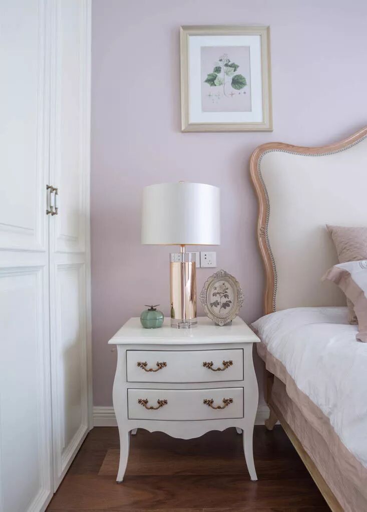 主卧选择驼色与白色做主色调,清浅配色给人舒适、平和之,十分适合用在卧室等休息场所。美式风格的床头柜、灯具为空间带来精致感,提升了卧室整体设计的格调。