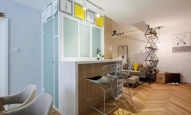 如果用一平米来提升生活情调,你会想到什么呢,腻腻想到了吧台,在客厅与阳台之间设一个小吧台,即是隔断,也是一处不错的休闲之处,暖暖的灯光下,两人对视而坐,喝喝小酒,谈谈生活,也是别有一番情调的。