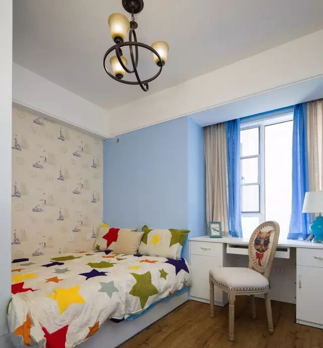 儿童房也是以淡色为主 写字台布置在窗户的位置 恰当好处