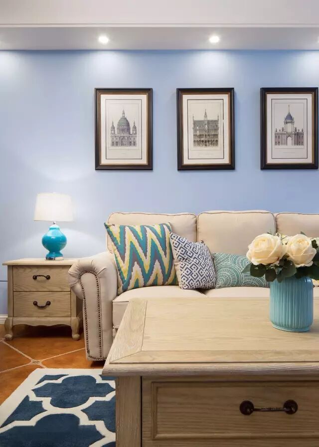 淡蓝色的墙面显得很是素雅清澈