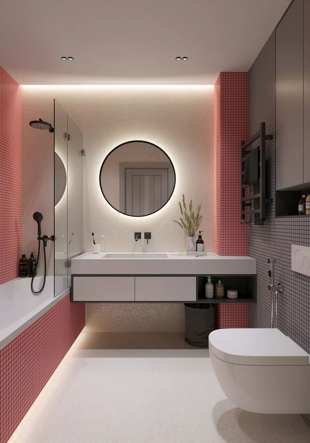 淡淡的肉粉色,发酵出甜蜜的气息,尽显柔和的浪漫。它淡雅清丽,不会抢任何颜色的风头,可以让原本冰冷的卫生间也温暖起来。