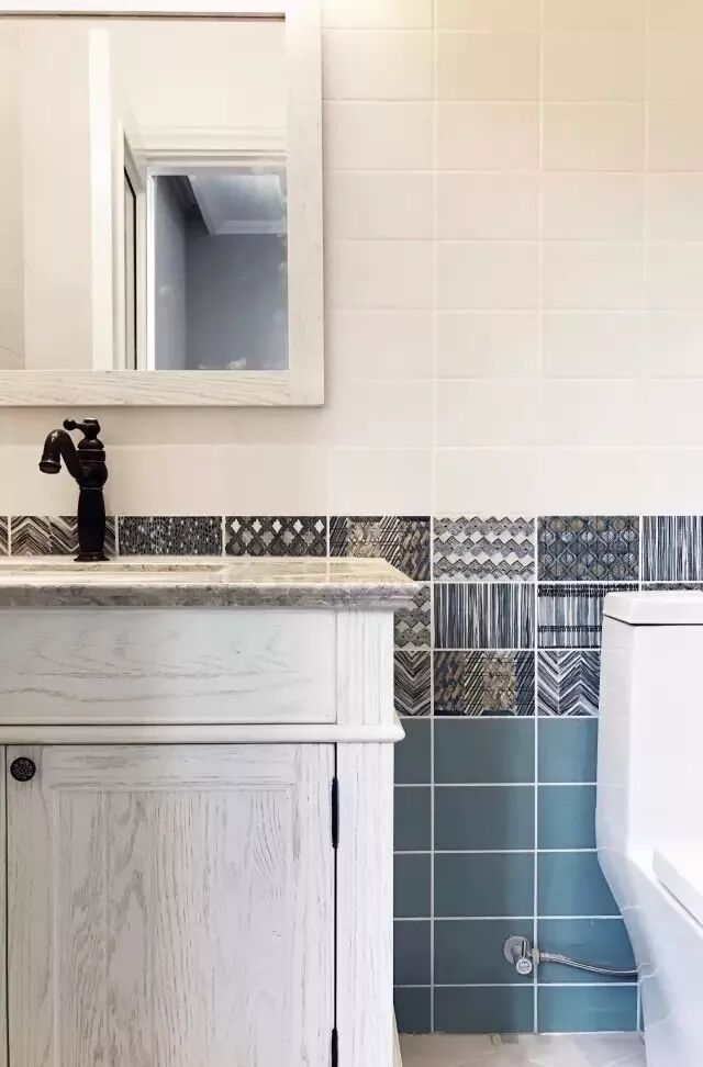 雾霾蓝本身属于一种高级灰的颜色,比起生硬的蓝色,更富有高级感,作为卫生间的主色调,可以凸显出自己独特的品味。