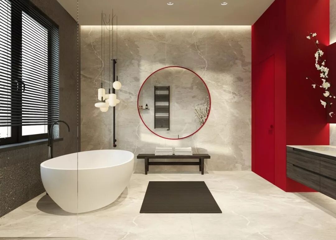 小辣椒的颜色有点砖红,还带有些复古红的味道,与白色、灰色搭配,彰显时尚的女王气场,是白领女士的首选卫生间主色调。