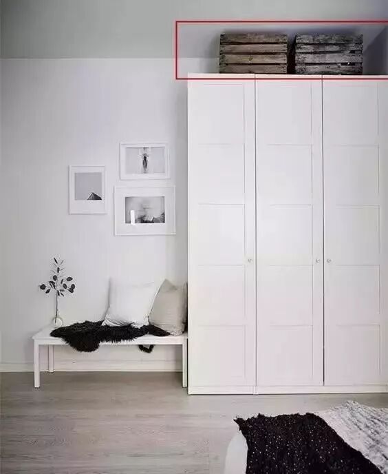 我们首推通顶衣柜,因为不通顶的衣柜在使用过程中着实有些尴尬。