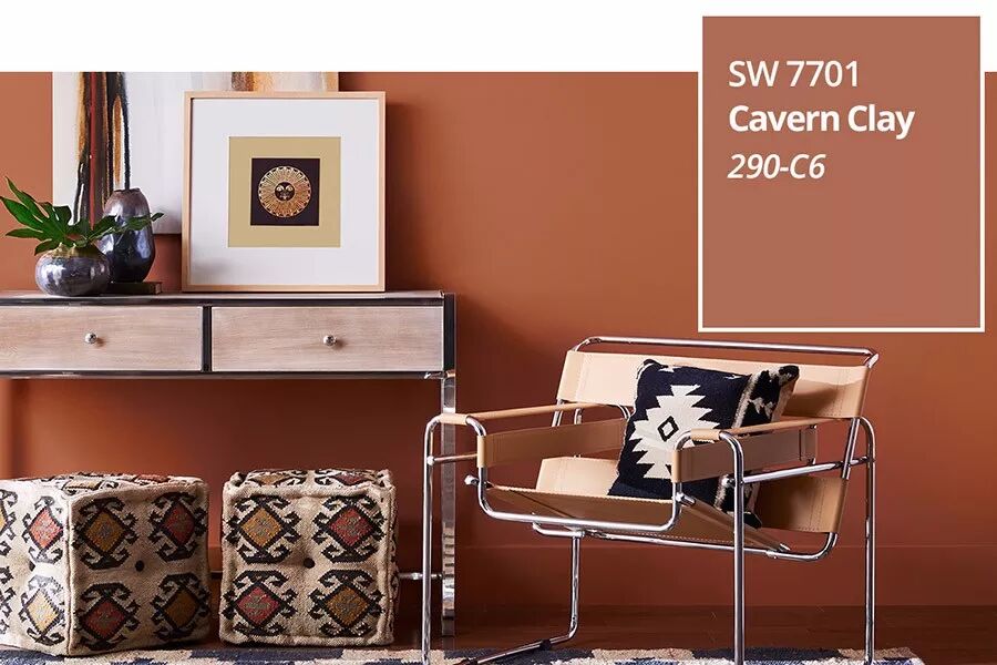 这种温暖的陶土色调是接地气的,受欢迎的,精致的,并与温暖的灰色、深褐色、中音蓝色,和温暖的中性色很好地搭配。
