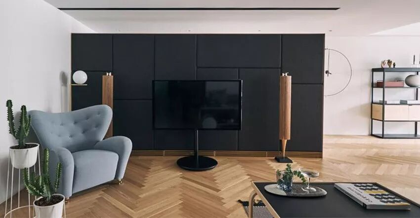 黑色电视墙同时也是鞋柜,一体两面的设计节省空间装潢,并贴上吸音棉加强隔音;搭配多个单人及双人座沙发,弹性调整空间利用,刻意选择不同颜色以丰富层次感。