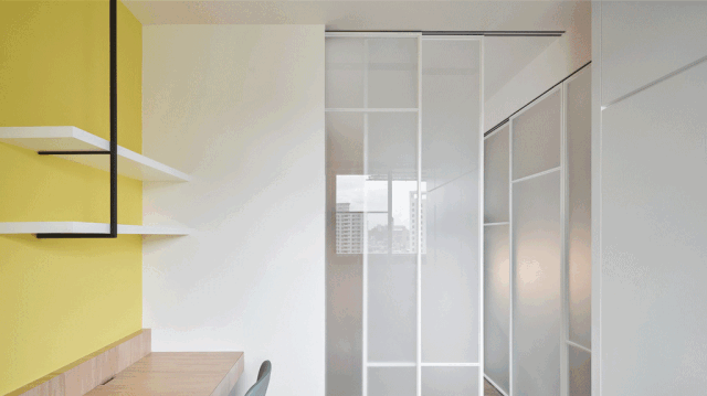 利用雾面玻璃拉门做分隔