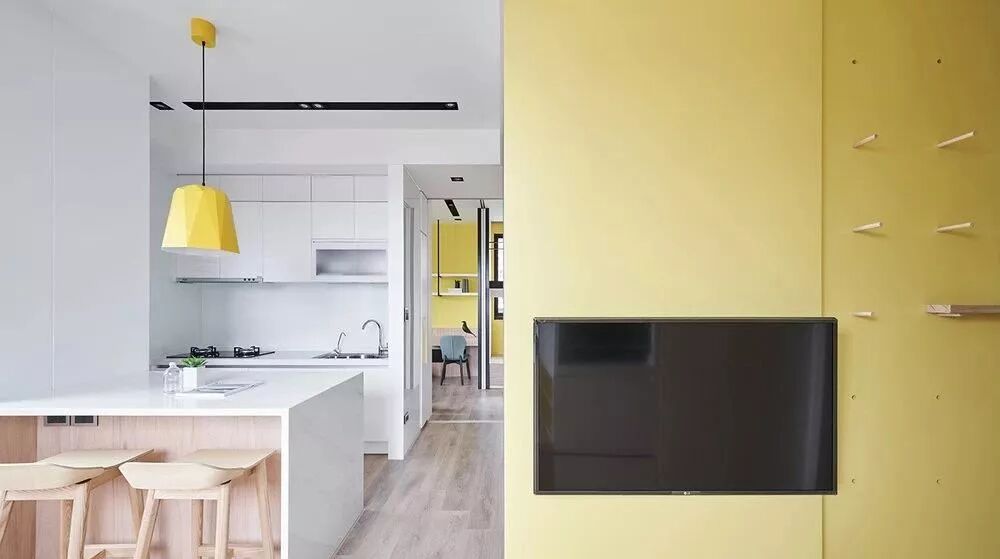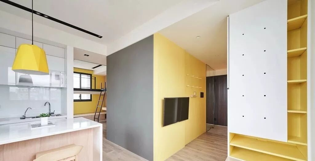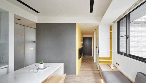 从玄关入口墙面开始加入黄色元素