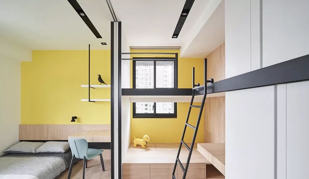 卧室墙面也是黄色为主