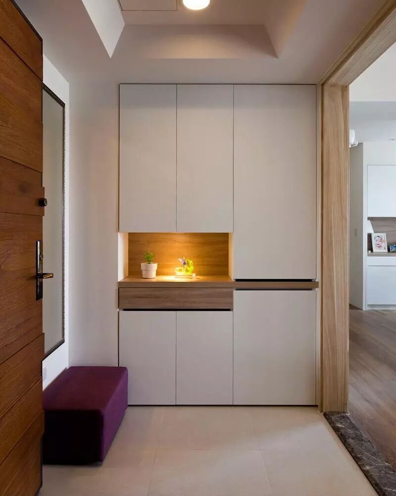 ① 玄关。玄关一般比较小用于放置鞋子、雨伞、包包.....都是些琐碎的东西,无把手的设计可以弱化这种琐碎感,提升空间的整体性。