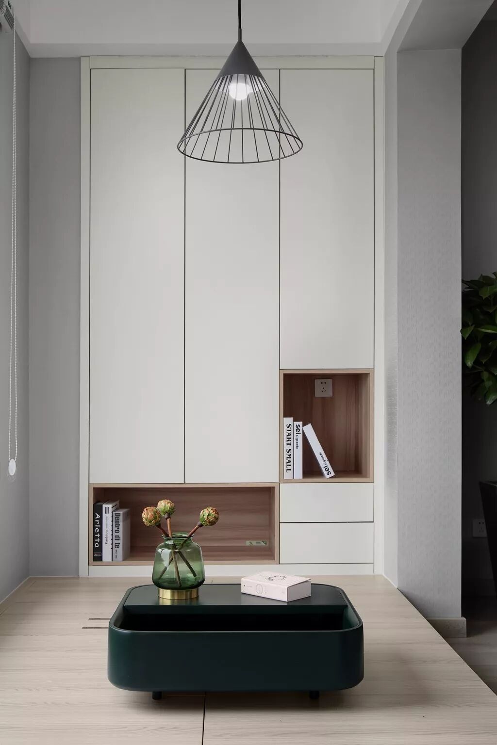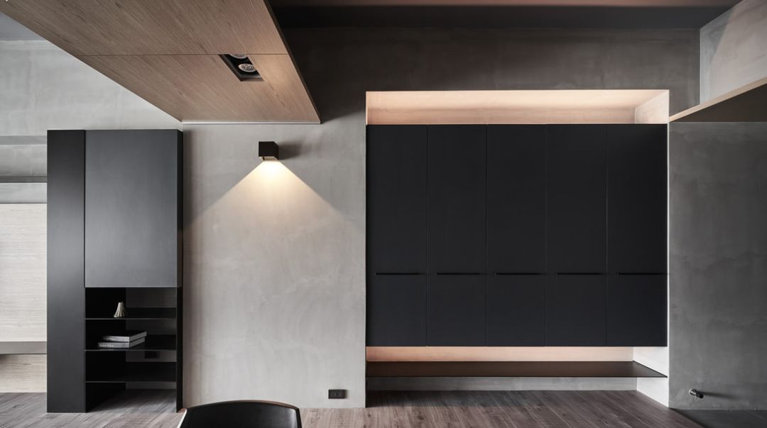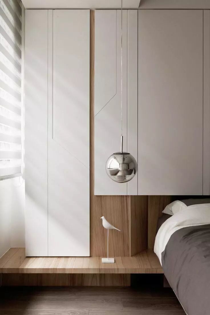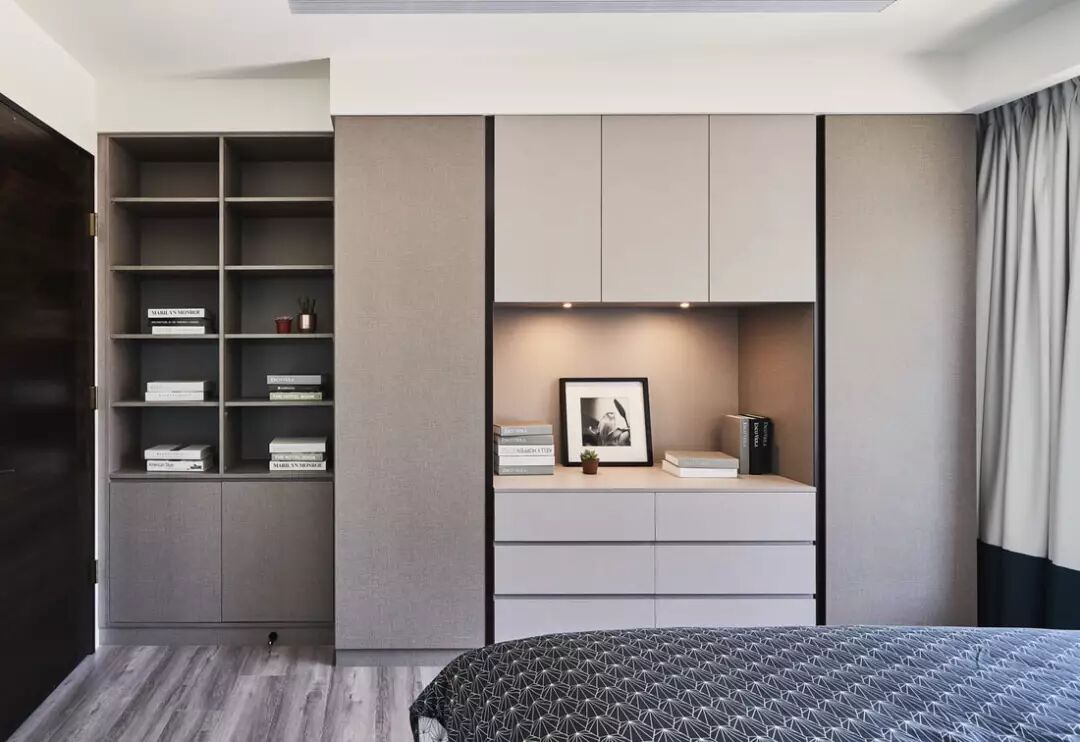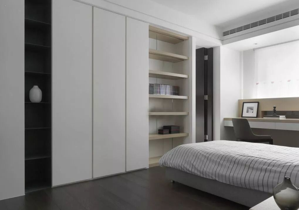 ④ 卧室,主要是顶天立地的衣柜,无把手更显修长拉伸空间感。