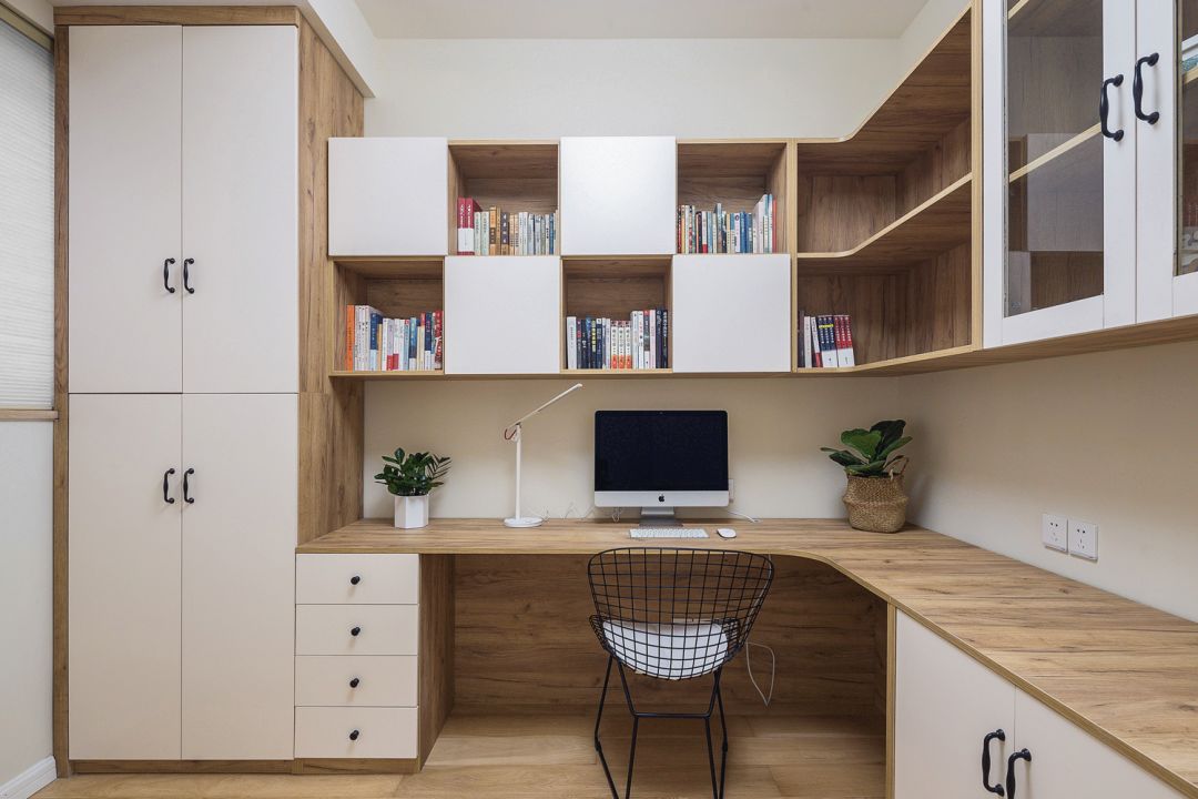 书房没有窗户,本来设计成杂物间,但业主喜欢阅读,平时工作需要,小孩子也需要这样的空间,所以设计成了书房。