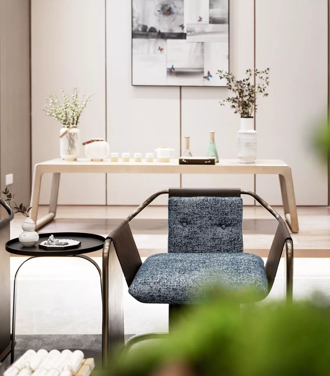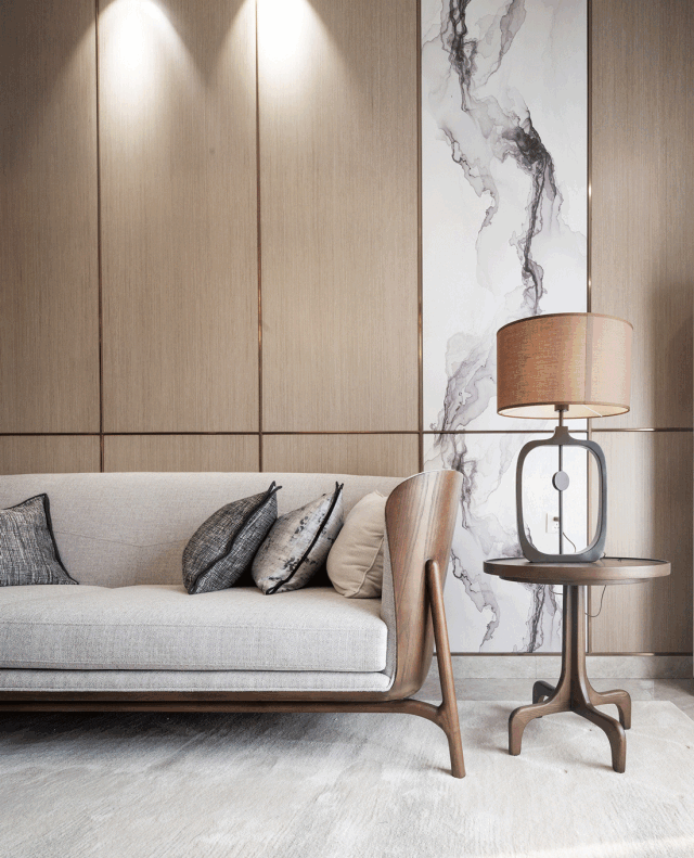 此次项目位于广东佛山,设计师以轻描淡写的手法,描绘块面柔化转角,将心中所思所想都倾注于此,打造出一个飘渺灵动又充满韵味的空间,瞬时让人忘却俗世的繁华喧嚣。