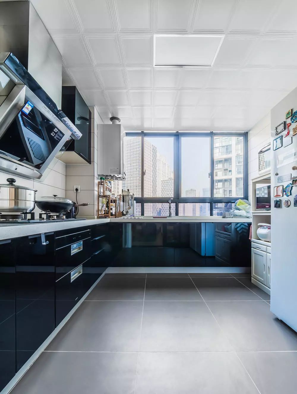 厨房走黑白灰路线,打造出一个质感的空间,带给我们视觉上的轻巧感,是视觉的享受。