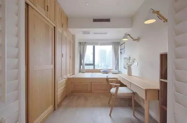 ▲北欧风格与日式风格的综合,木头材质和白色的基调就这样定了下来。