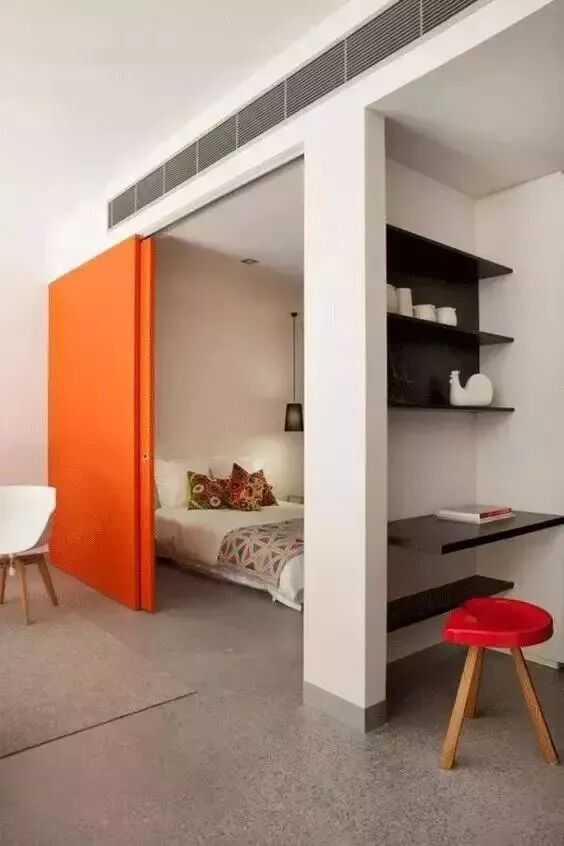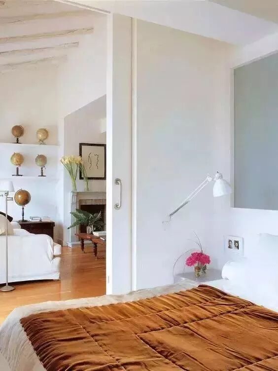 在隔断这件事儿上,与实体墙配合最好的伙伴无疑是房门了,让门和门套与墙的颜色一致,勉强算是隐形了吧。