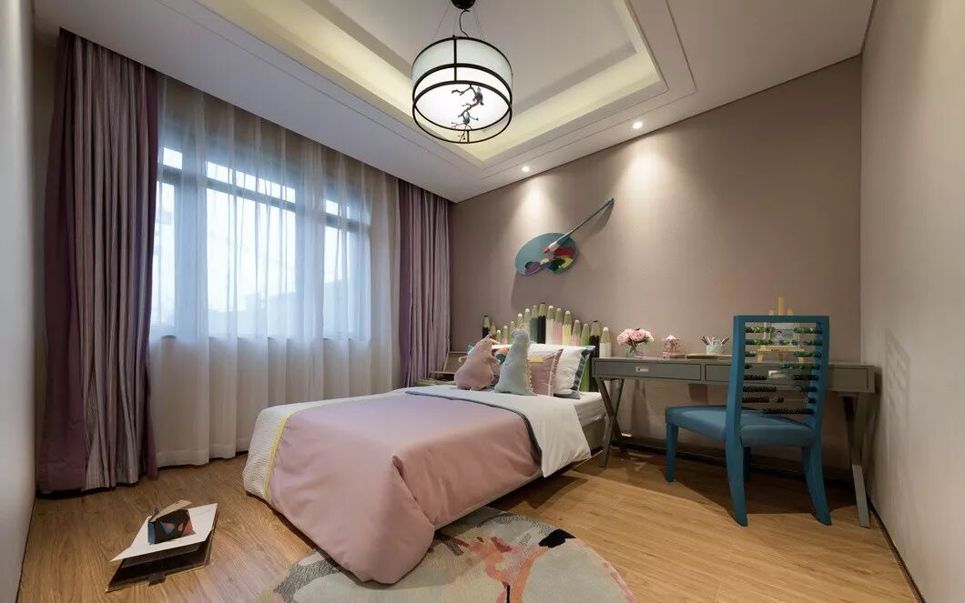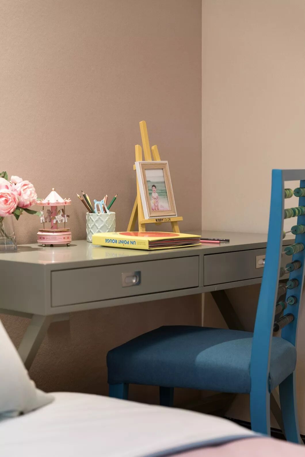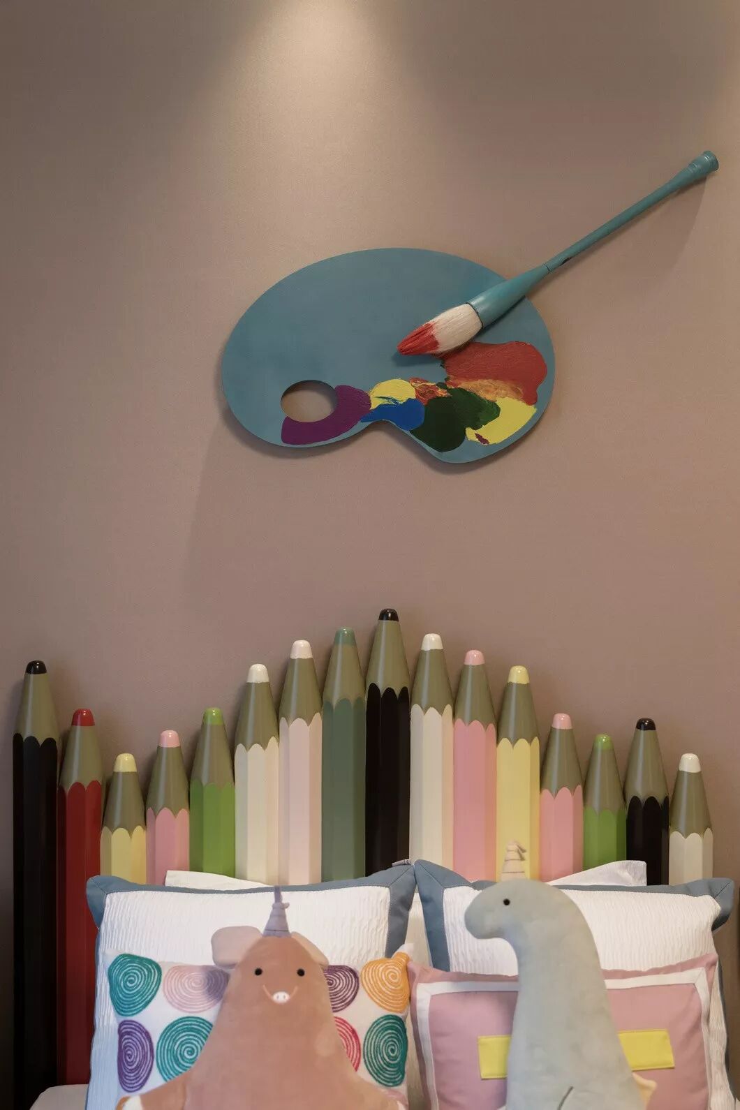 女孩房整体色调以粉、白色为主,融入油画、彩色铅笔等元素,凸显了满满的少女感和趣味性。