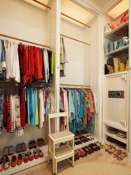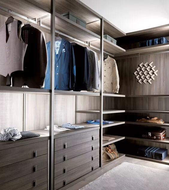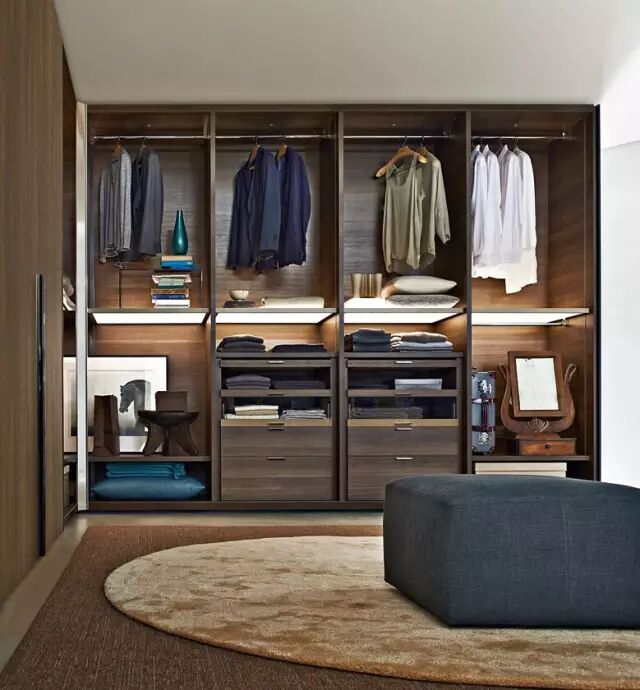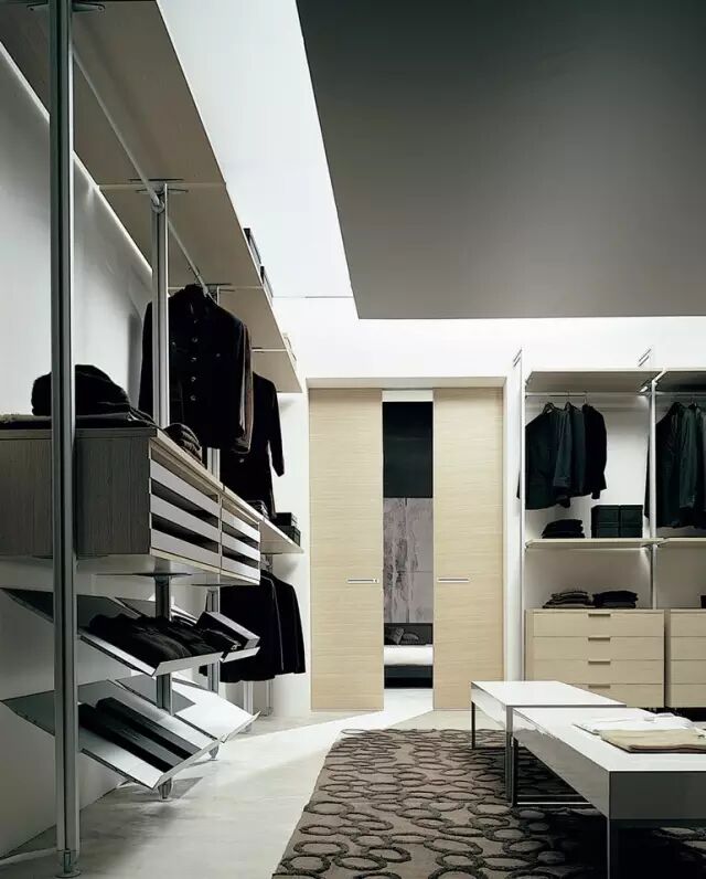 开放式衣橱虽然很受欢迎,但是内部结构设置也非常重要,合理布局衣柜内部结构,首先要根据主人的身高和生活习惯来定制。