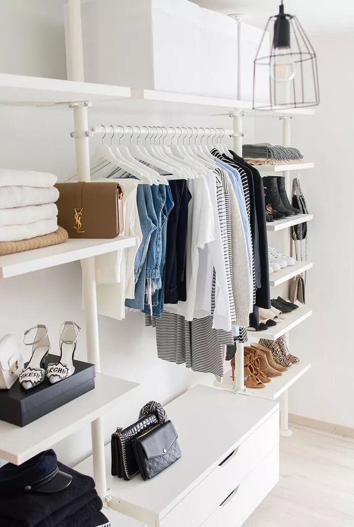 白色是白搭色,无论什么风格的房子,白色开放式衣橱都能与之搭配,白色给人一种简约时尚之感,在视觉上也能让空间更显开阔,如果你的衣帽间或者卧室面积不大,可以选择白色的衣橱。