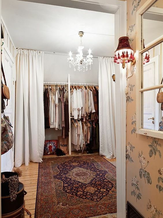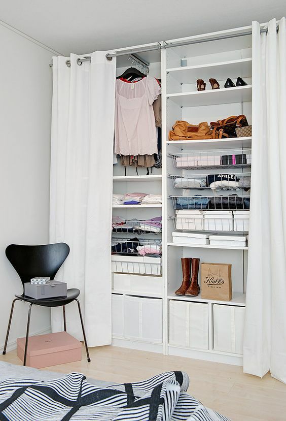 如果你觉得衣物比较多,显得杂乱,可以用喜欢的帘子遮挡,效果也不错哟。