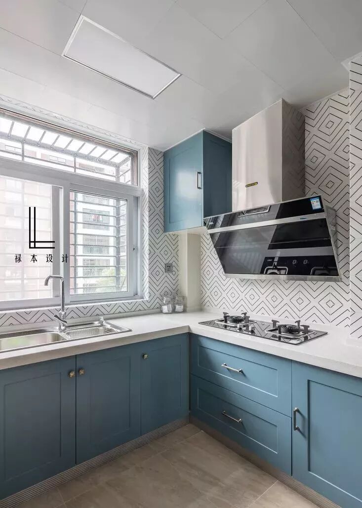 浅蓝搭配白一点的色调更适宜,打造厨房的高级质感。