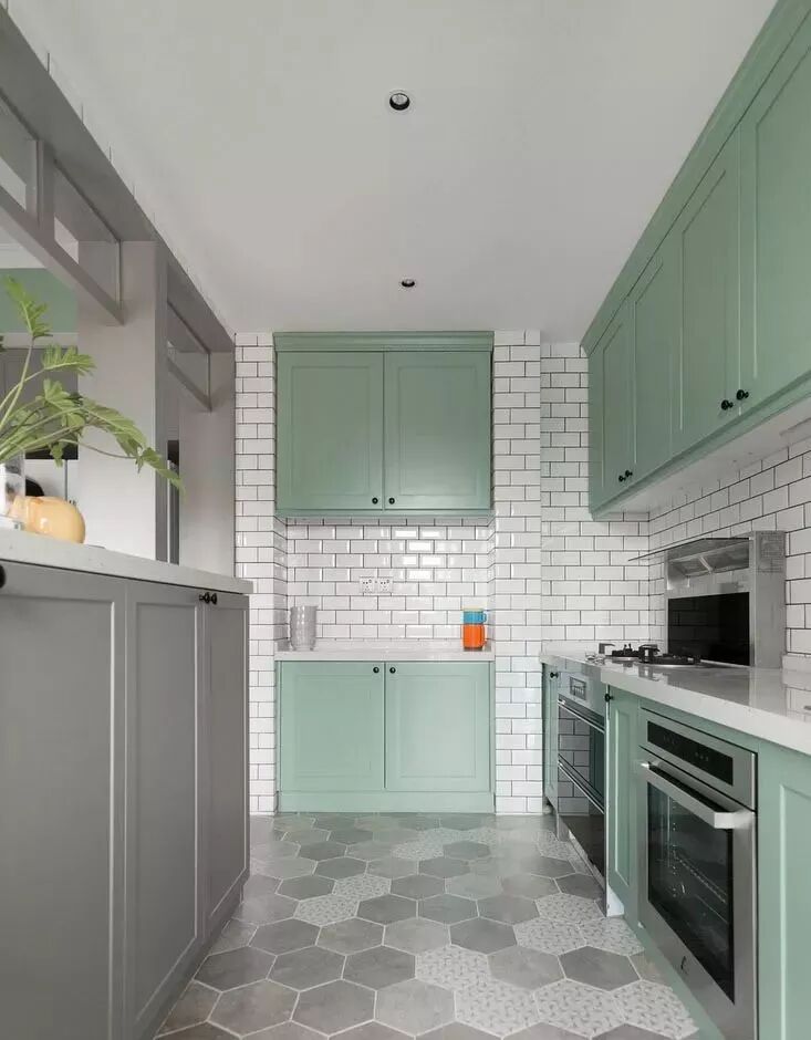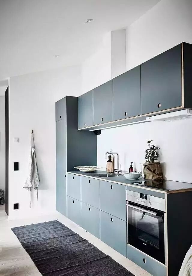 蓝色橱柜也很常见,但绝不是辣眼睛的荧光蓝,而是深蓝、蒂芙尼蓝,浅蓝,这些都是适合橱柜的颜色。
