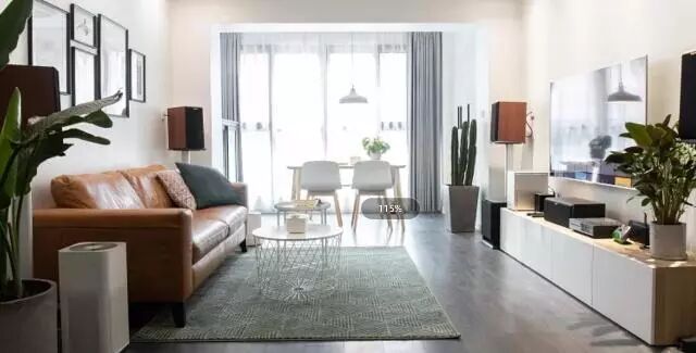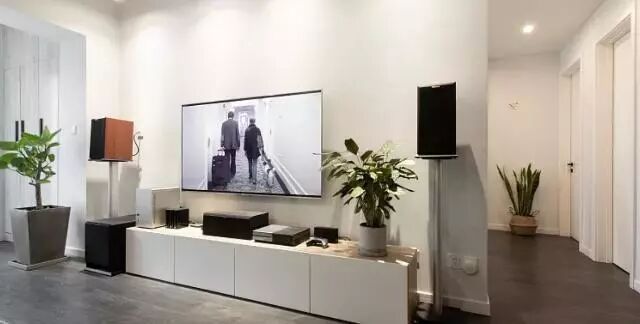 除此之外家里还装了立体环绕音箱,电视墙左右一组,沙发两侧左右一组,效果十分舒适。白色的极简电视柜,大气简约,而且储物功能也很强。这样一来,电视背景墙反而不需要复杂的装饰,留白就可以了。在筒灯光源的照射烘托下也十分有层次感。