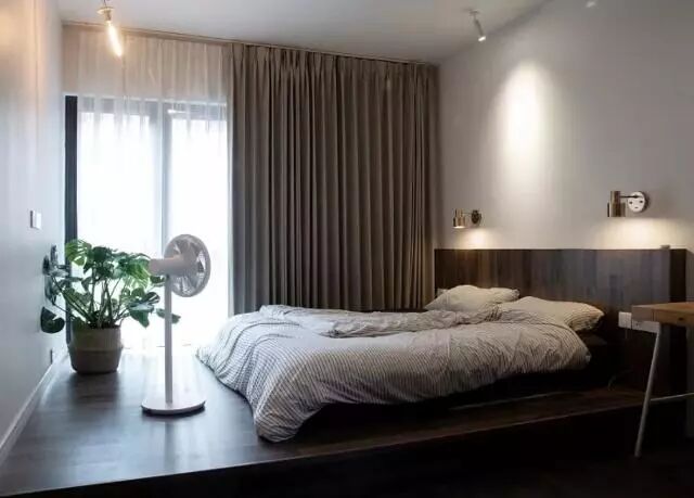 书柜右侧的门打开就是主卧了,当初装修的时候。老公坚持主卧不买装,而是选择做了一个10cm抬高的地台,直接铺设床垫,起初我还觉得这个设计很奇葩,很老土。如今我们已经入住一年了,才知道明智!没有了床的束缚,整个地台都可以作为自由活动休闲的空间,十分大气舒适。也非常好做卫生,几乎没有什么死角。