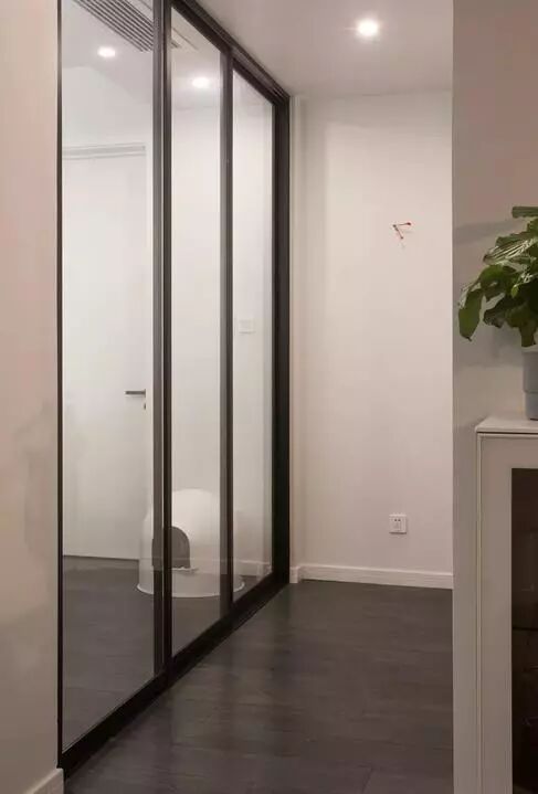 书房和主卧基本做成了一个套间,门口装了玻璃移门,这样会显得过道更加通透大气。