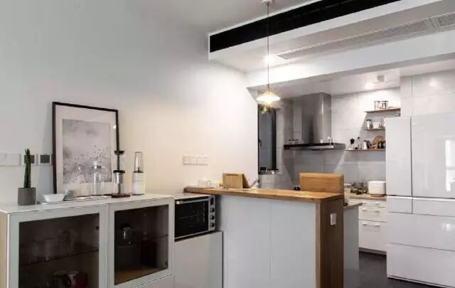 因为门厅的采光很差,狭窄的空间还要被隔墙占用,所以出于多方面考虑就做了开放式的厨房,这样通透大气多了。