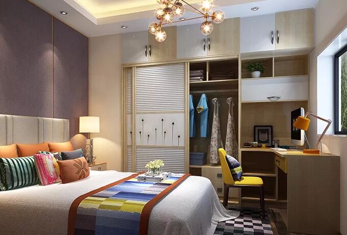 咋办?让书柜、书台和衣柜一起抱团定制是最好不过的了,在有限的卧室空间里完成多种功能,满足生活需求。