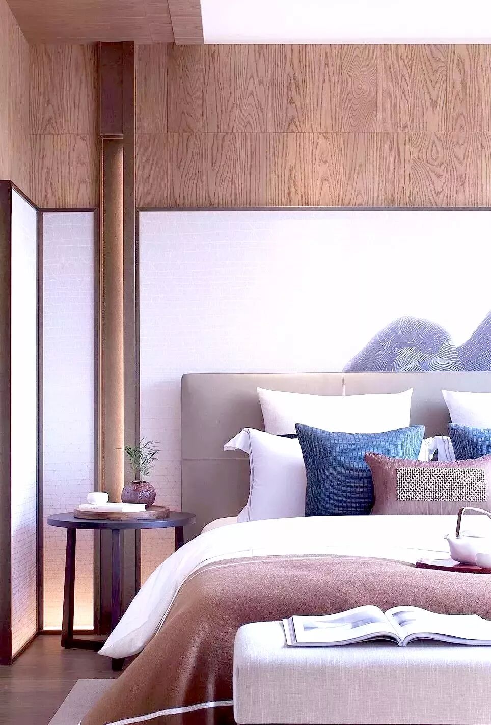 在新中式风格的家装设计中,卧室背景墙的呈现更是大气优雅,令人着迷。