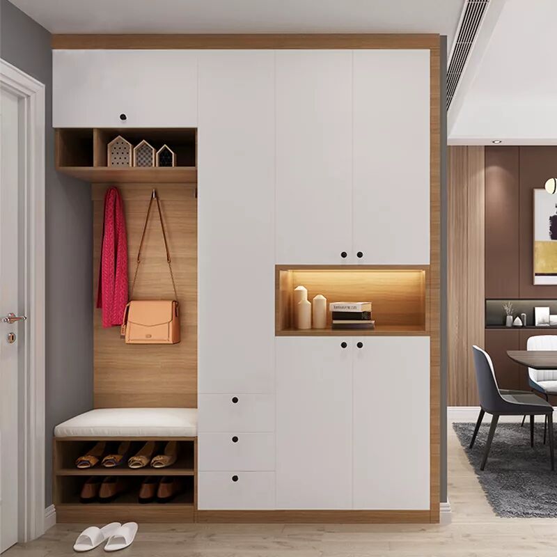 多功能鞋柜是不少家庭的首选,现在都在讲究资源整合,家居潮流也是如此。把鞋柜、书柜、展示柜结合在一起,一柜三用,经济又实惠,还能整合空间,减少占地。