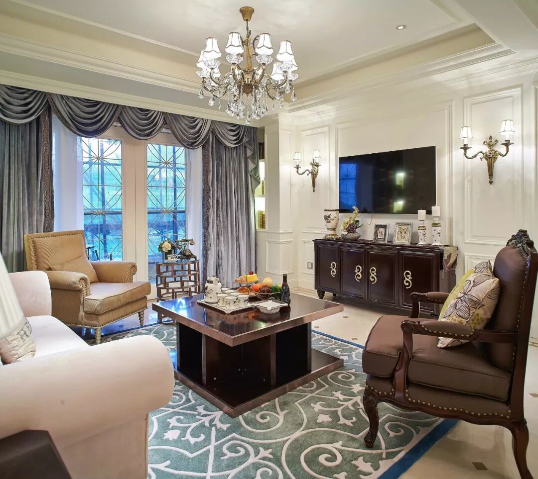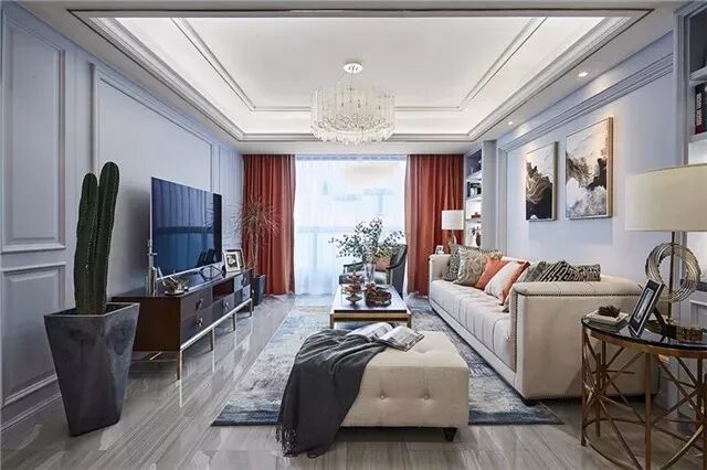 背景墙的造型设计,在一些简约现代风格里通常都是以简单整洁为主的,但是在一些欧美风格的装修里,若墙面过于单调的话就难以与软装空间相互衬托档次,这个时候不妨在墙面上加些线框,会立马显得高档起来!