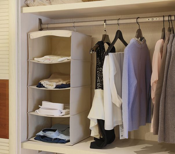 ▲ 如果隔板不够,还可以在空出来的悬挂区添加四格吊袋,折叠较轻的衣物、帽子、丝巾等,爸爸妈妈一定会觉得很贴心。