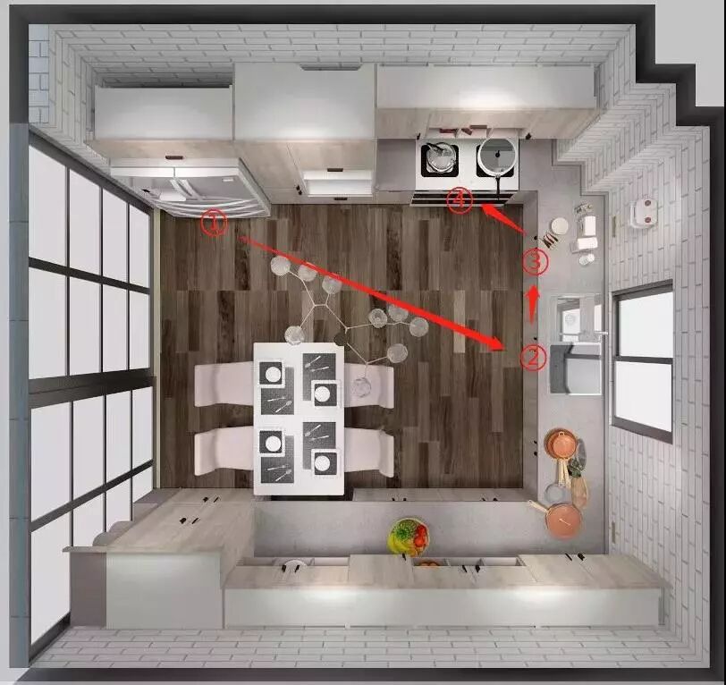 ▲另外,厨房的私人订制感满满,我喜欢餐厨融合的形式,于是选择了嵌入式餐桌,做饭时可以推入台面下,给过道留出很大的空间,也不怕孩子们磕碰。