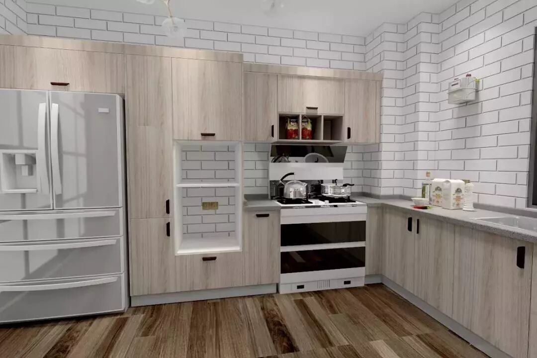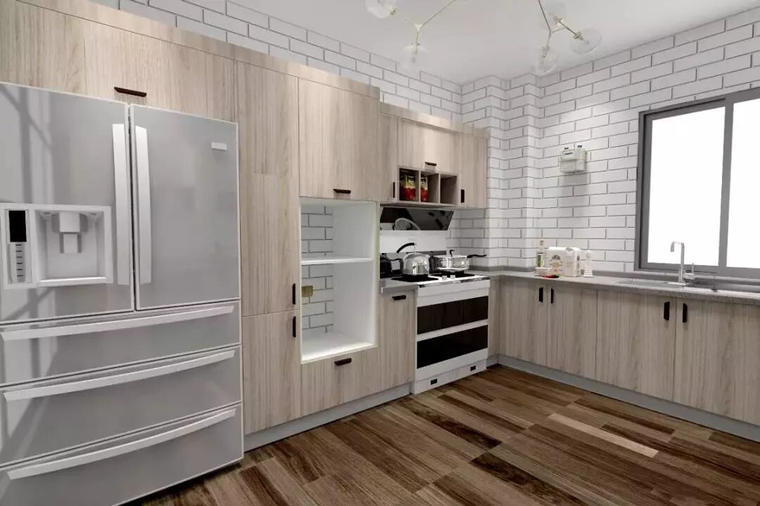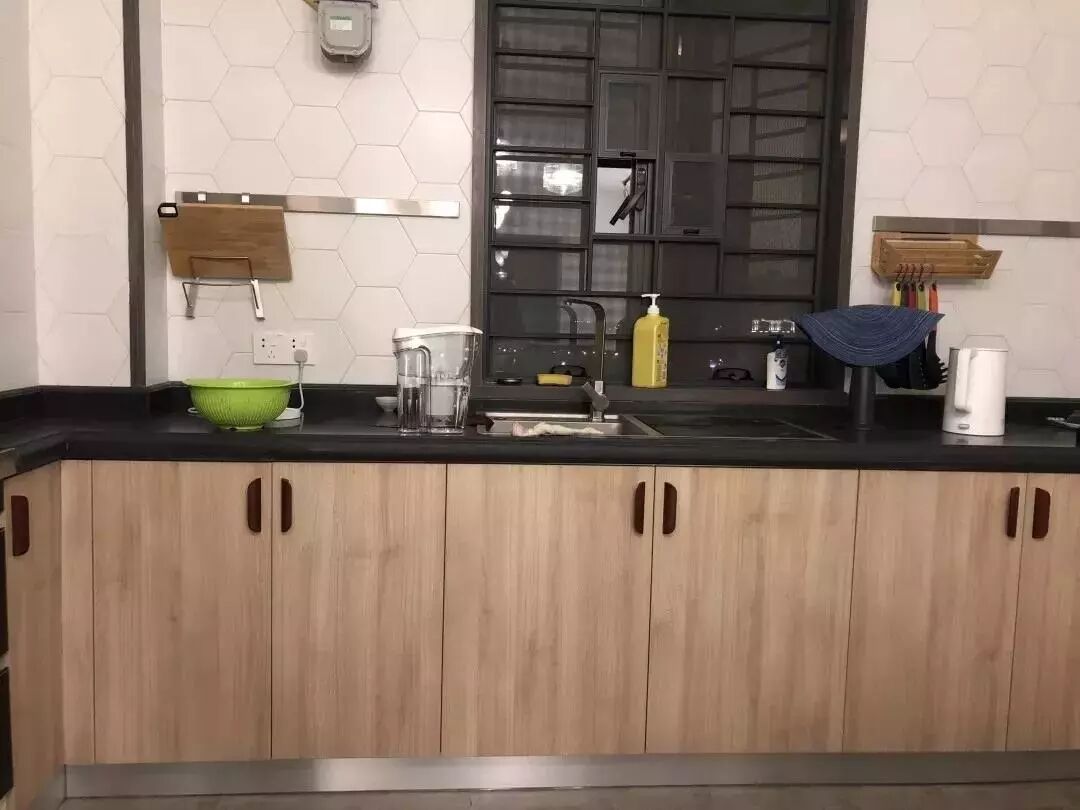 PS:水电位真的很重要,我的电器和厨柜一起定的,设计师帮我把水电位安排的特别好,一些电器烟口朝下,专门用了特殊的柜子来包管,使用感完美不说还美观!