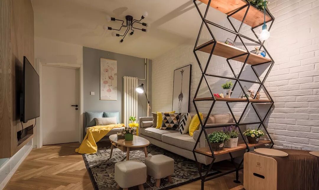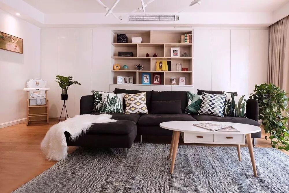 除了单纯的装饰,沙发背景墙还能做收纳设计,尤其适合空间小的客厅,可以做搁板、置物架和收纳柜。各种造型的搁板和储物格子,既能储物,又有装饰作用。