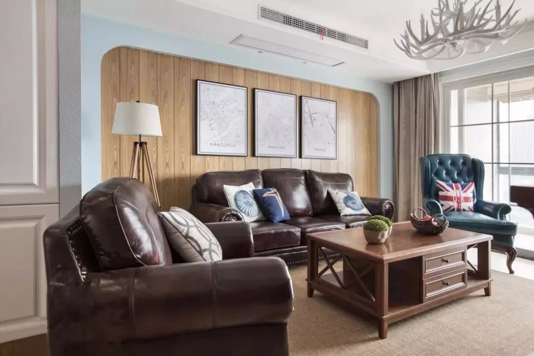 沙发背景墙可以直接用乳胶漆、文化砖、石材、木饰面、石膏线等不同的材料进行装饰。