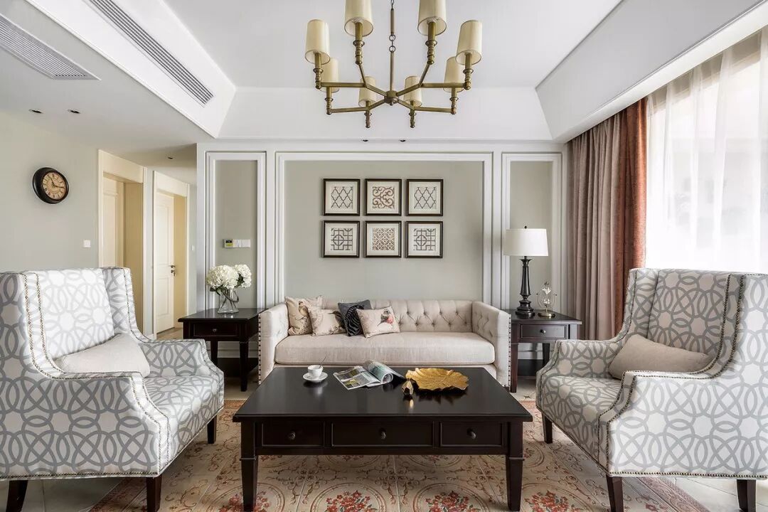 此外,沙发背景墙也可以用一点装饰品进行点缀。装饰画和照片墙最常见,也可以用挂盘及各种工艺品装饰。