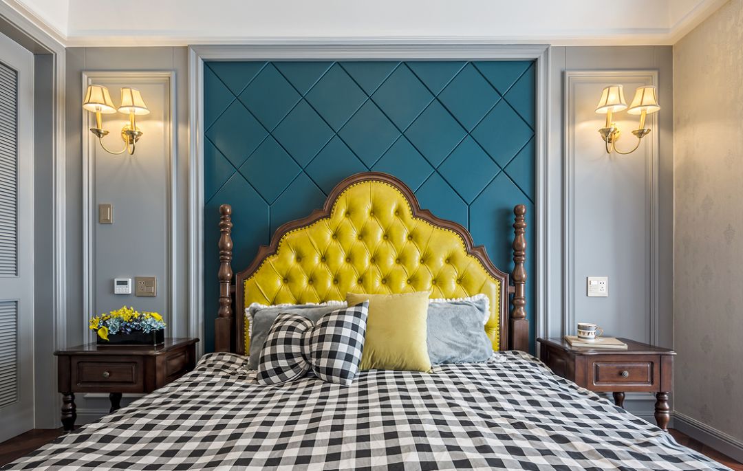 在卧室背景墙上挂婚纱照真的过时了,可以选择木质、软包、壁纸这些材质来进行设计,不信看看下面的效果图,真的很时尚了。