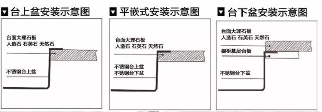 台中盆也叫平嵌式,按照水槽安装边的尺寸,在橱柜的台面打磨去一层,把水槽跟台面作为一个平面。