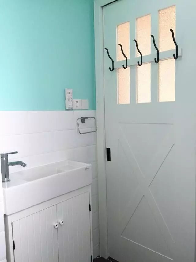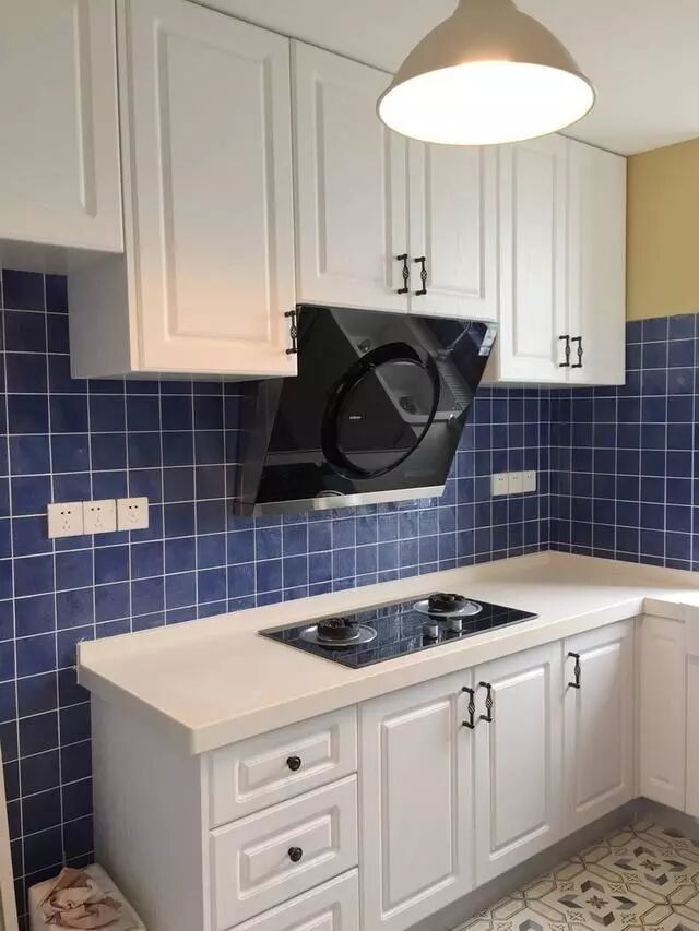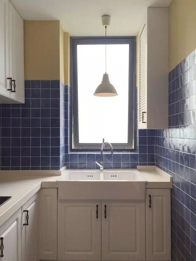 厨房的配色很大胆,倒也很清新;