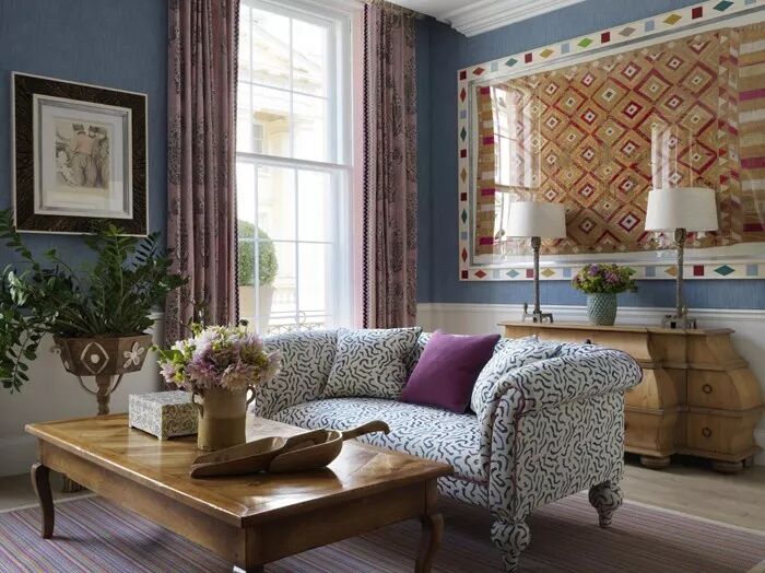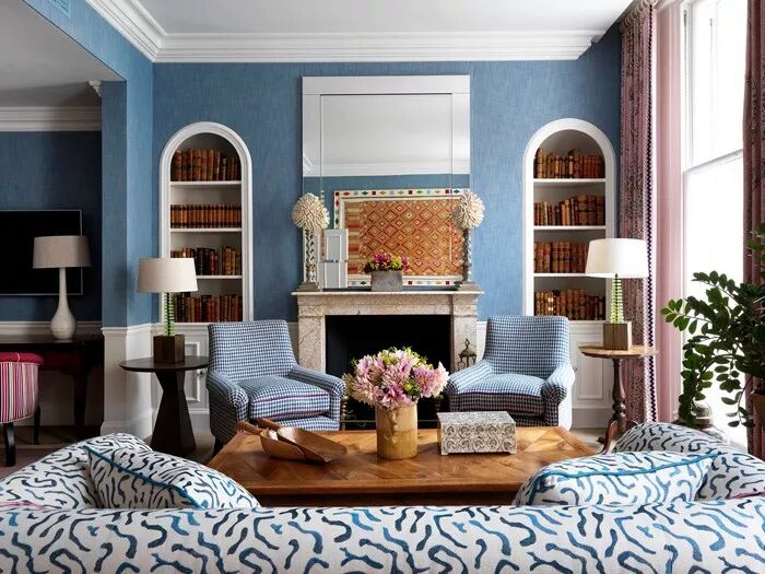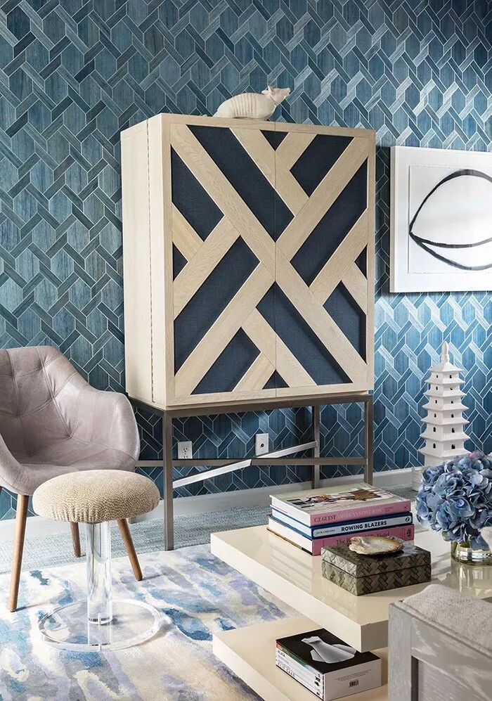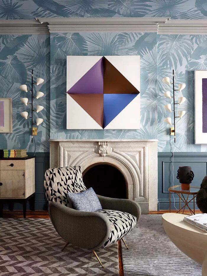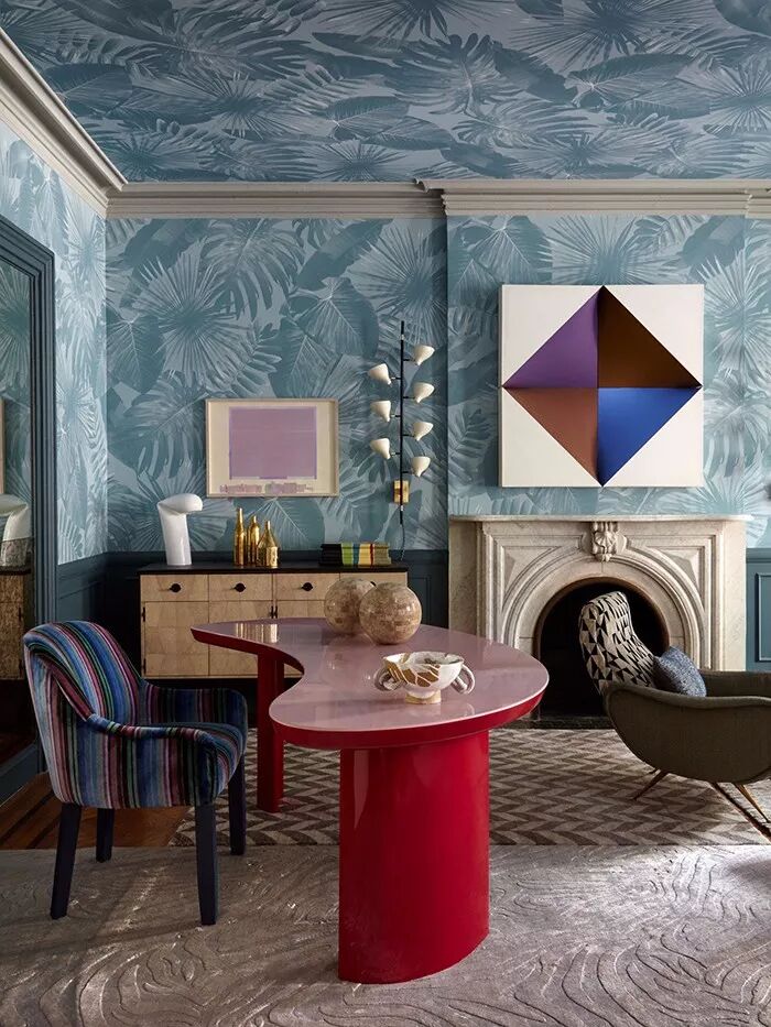 当温和沉静的灰蓝色邂逅柔情四溢的珊瑚粉,整个空间都被赋予了浪漫温婉的感官体验。以灰蓝色纹理壁纸结合纯白护墙板装饰墙面,蓝白几何沙发作为补充组成谈话组,清隽的色调延展出一份优雅文艺的知性美感。悬挂珊瑚粉色佩斯利图案窗帘,自带的异域浪漫风韵为整个蓝调居室都覆上了诱惑的味道。