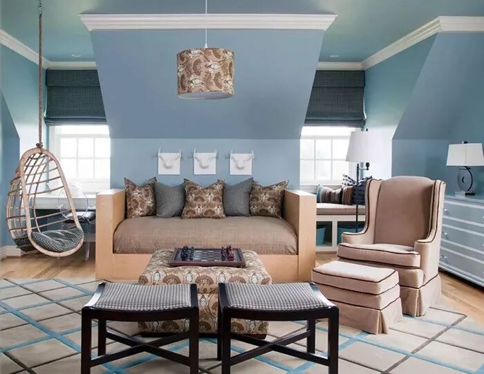 烤杏仁色是裸色系的中坚力量,而裸色又被称为“没有侵略性的色调”。将其用在家居装饰中,带来的将是一份亲切与柔软。在灰蓝色做背景的空间,装饰一抹质感温和而恬然的烤杏仁色布艺家居,舒缓的色泽视感中流露着源源不断的优雅气息。在配色方面,可以考虑同色系,灰褐色地毯及床品,淡淡的婴儿蓝边柜,让空间愈加知性与温婉。